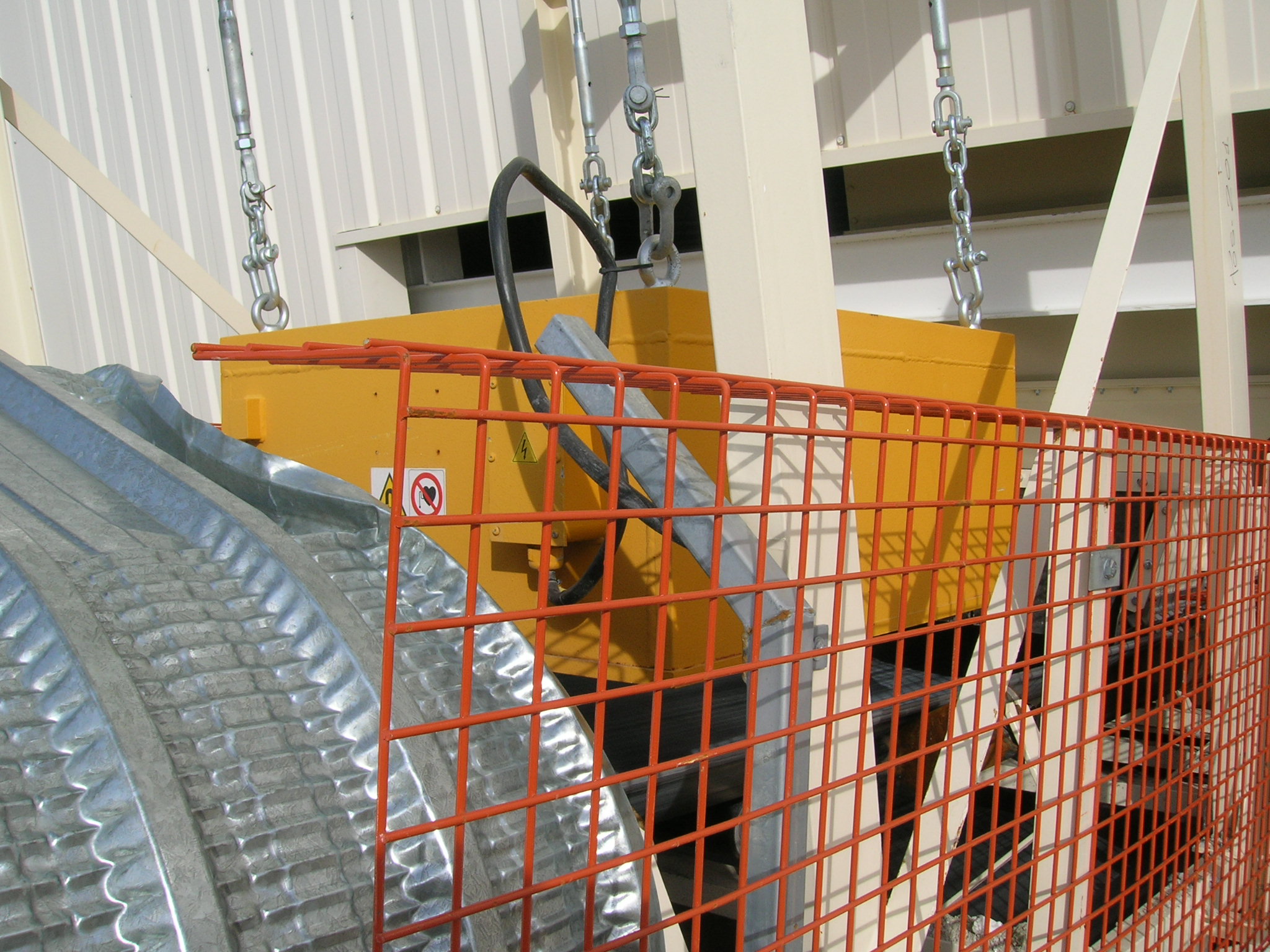 Compuesto por una única placa detectora. Se instala bajo la cinta transportadora, ideal para proteger molinos secundarios o terciarios con una granulometría no superior a 100 mm. y una altura de capa de material de aproximadamente 150 mm.