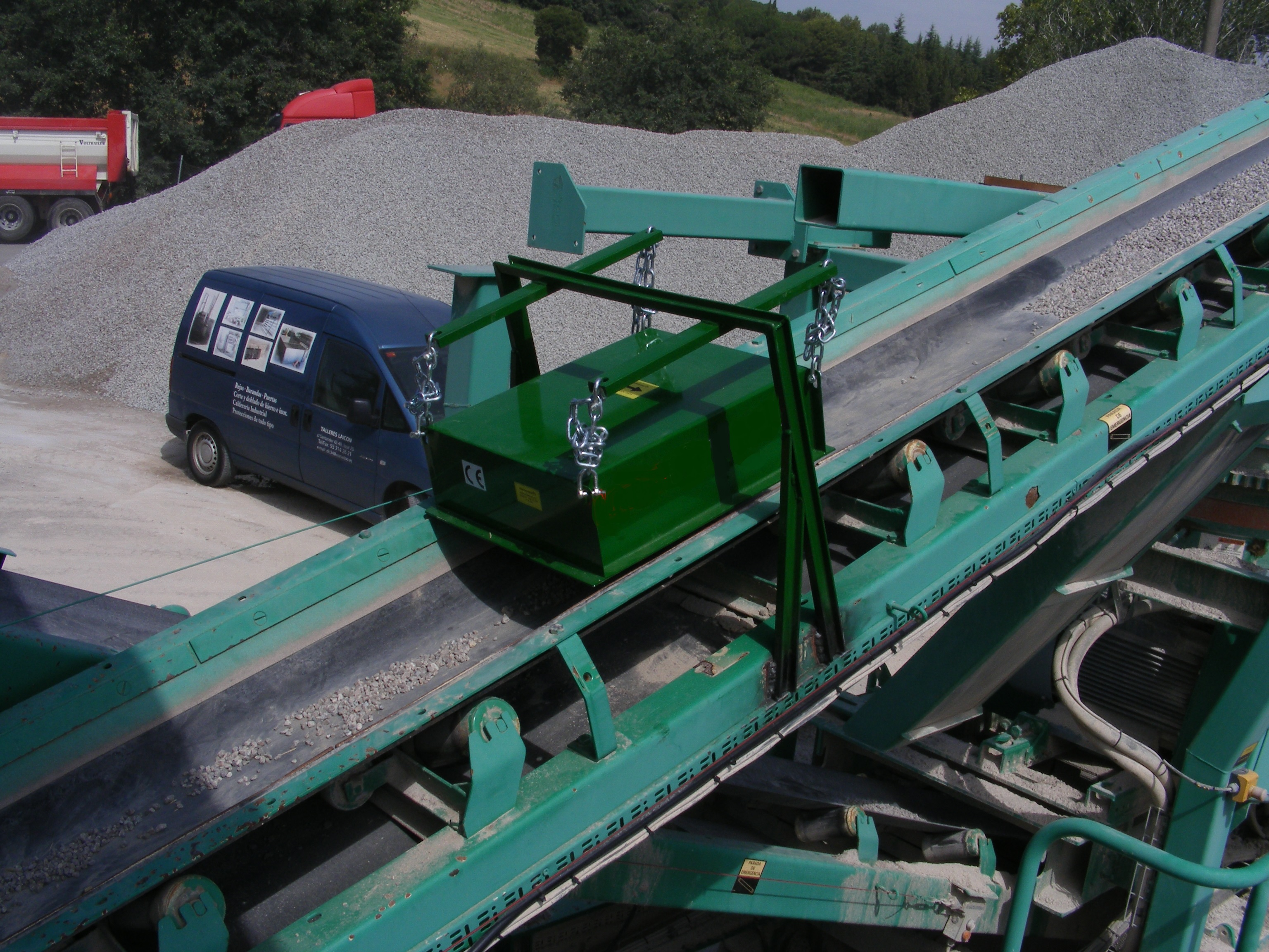 Consiste en una cinta transportadora que rodea al electroimán y va eliminando fuera de la banda donde circula el material los posibles metales que se encuentren mezclados con el producto, manteniéndolo de esta forma siempre limpio y en perfectas condiciones de trabajo.